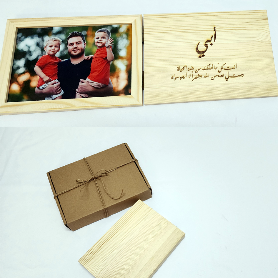 خلّد أجمل لحظاتك مع أحبائك في هذا الإطار الخشبي الفريد المصنوع بحُب ودفء. يأتي هذا المنتج المميز مع صورة مطبوعة عالية الجودة، وتُفتح الغلافات الخشبية لتكشف عن عبارة محفورة تختارها بنفسك — سواء كانت كلمات من القلب، اقتباس ملهم، أو رسالة حب قصيرة.